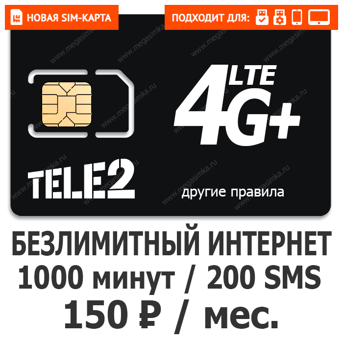 SIM-карта ТЕЛЕ2 Гибкий PRO 150 (саморегистрация)