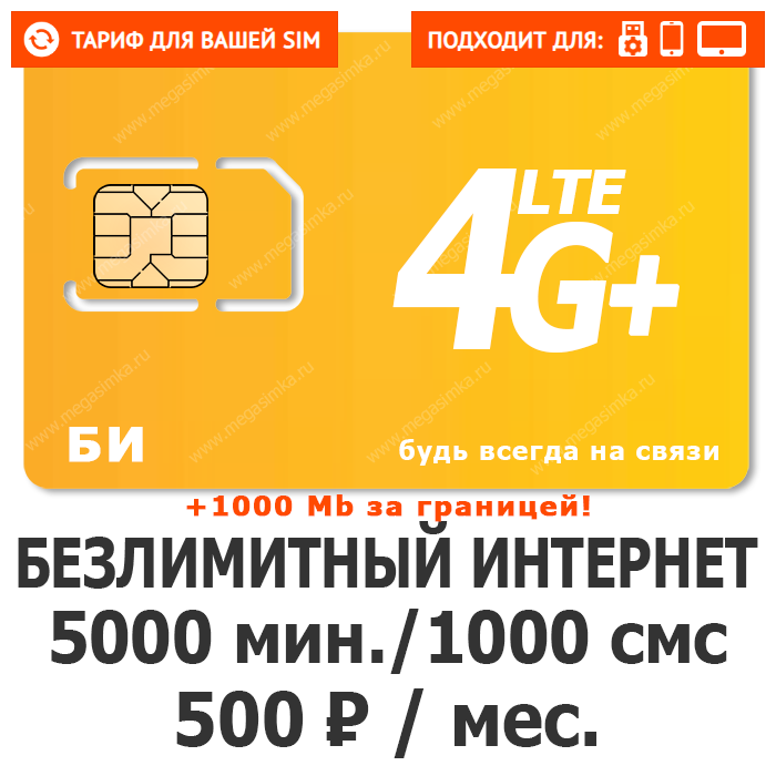 Трафик: БЕЗЛИМИТ + 1000мб заграницей