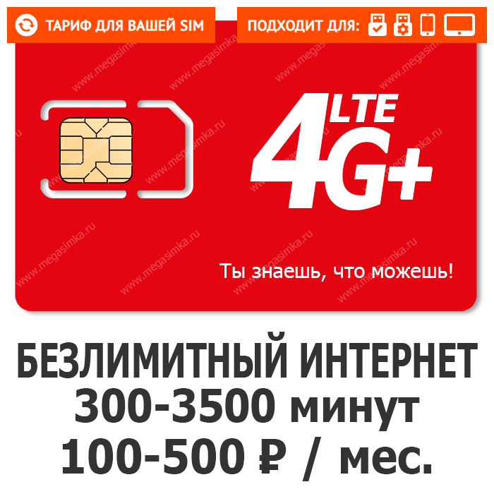 С какими устройствами работает SIM-карта: с любыми модемами (кроме не разлоченных модемов других операторов), роутерами, планшетами, смартфонами и т.д.